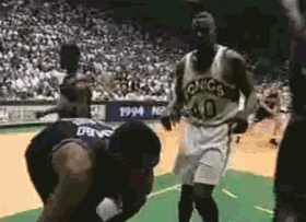 作为当年的8号种子,掘金面对拥有“手套”佩顿和“雨人”坎普的超音速,头两场比赛很快就败下阵来。不过回到主场的掘金,凭借雷吉-威廉姆斯砍下全场最高的31分,立马用一场17分的大胜回敬对手。随后的G4、G5,更是经历两次加时鏖战,大比分3-2逆转超音速(当年季后赛首轮为五局三胜),这也让他们成为NBA历史上第一支完成“黑八奇迹”的球队。