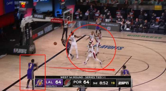 如果是第一场湖人糟糕的外线导致开拓者的防守策略改变,但这已经是第三场,湖人的外线射手手感不可能永远冰冷下去,还用这种方式防守反击,那只能说明开拓者对于湖人的反击,并没有做过针对性的调整。