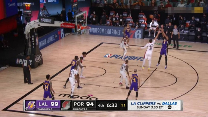 这可是追分的关键时刻,总是企希望于对方还像上半场一样被轻松晃过,是有些想当然了,可更重要的,在利拉德、CJ和安东尼在前场攻了10秒之久时,开拓者的双塔,还没有踏入前场的地板。