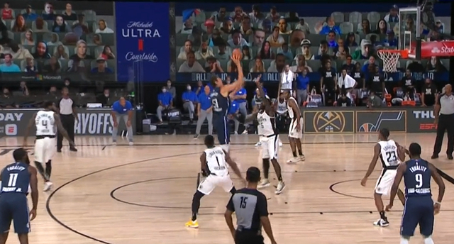而比赛最后时刻,即使之前三次三不沾,东契奇还是敢单打连续再来后撤步三分。