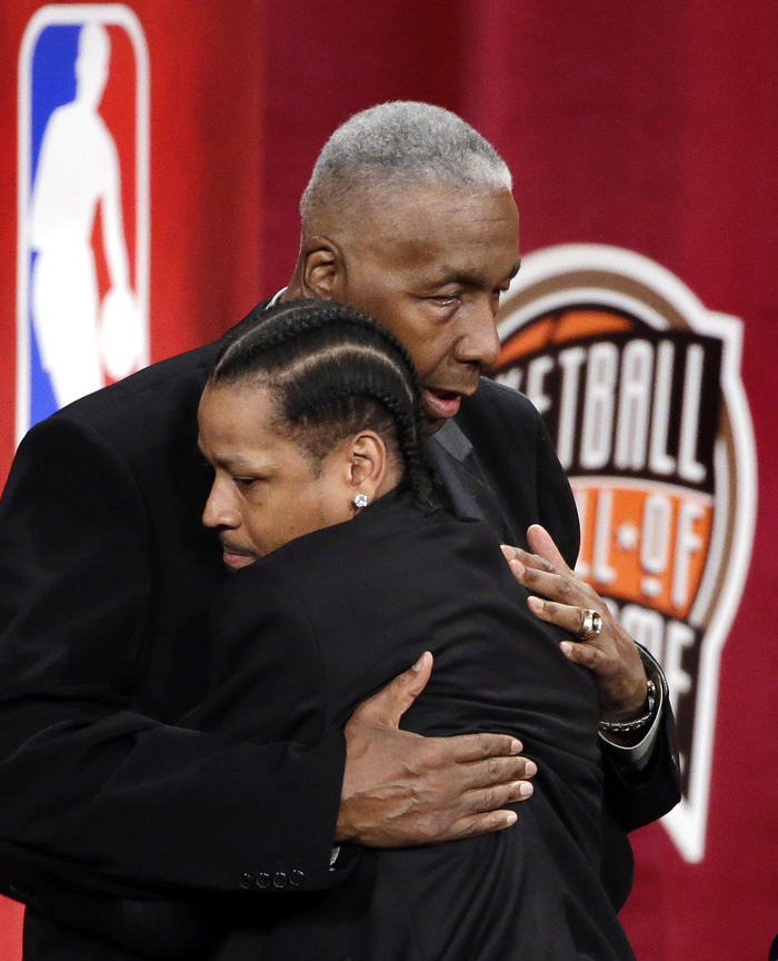 阿伦-艾弗森在自己名人堂入选仪式的演讲中,除了感谢名人堂的主席科朗吉洛先生外,此后第一个感谢的人,甚至不是他的妈妈,安-艾弗森,而是他大学时期的教练,坐在他身后的艾弗森的人生导师,时年75岁的约翰-汤普森。