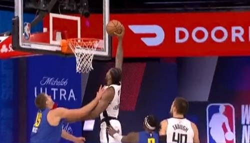 第四节初,快船以哈雷尔连续低位强打绞杀掘金禁区,辅以乔治反击杀伤;掘金板凳奋勇,蒙特-莫里斯抢断反击吹响反扑号角,穆雷+约基奇高位挡拆连线接管比赛,两人利用射程优势合砍11分(3记三分+1记中投),掘金一度94-88打停快船。