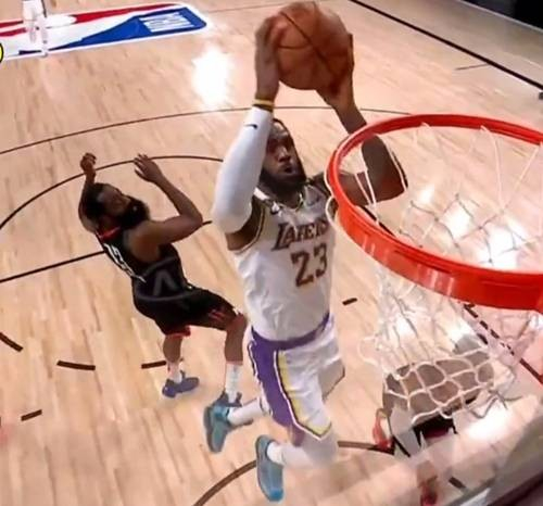 暂停之后,火箭以登威单打接管:威少单挑冲击莫里斯,哈登转换机遇战抢追身出手。勒布朗利用转换冲阵和阵地战单挑考文顿惩罚火箭,一扛二强冲禁区无人可挡,湖人23-7打停火箭。