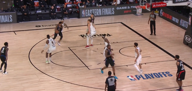 就像快船整个赛季的情况——快船一些回合会打得很亮眼但是难以维持,乔治无球切出二打二很奏效,然后快船下一回合又是中路挡拆。