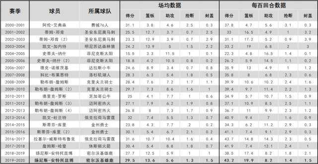 本世纪历届MVP数据及战绩
