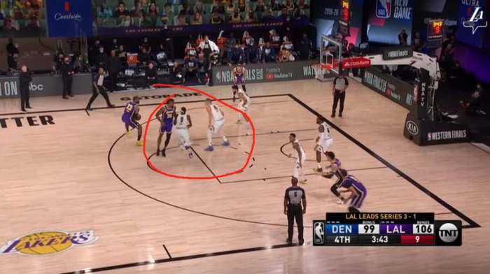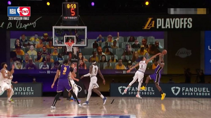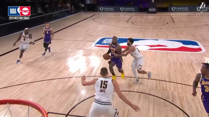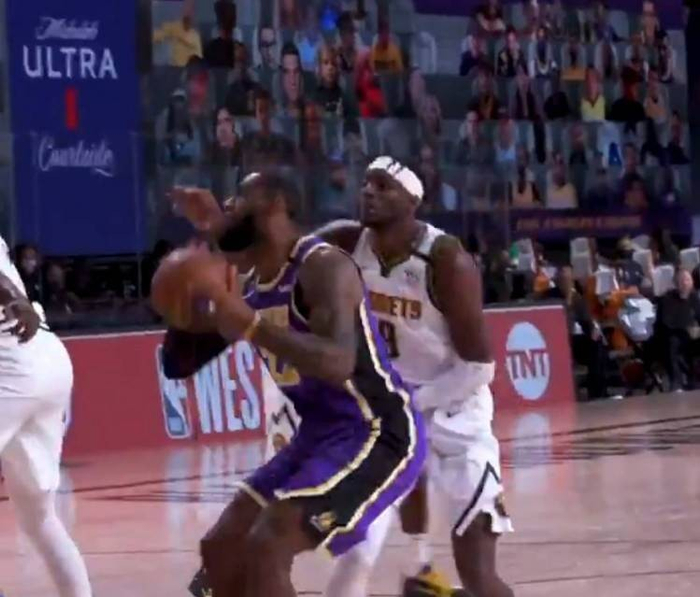 奇怪的是,掘金并没有对于这个对局做任何的调整,而是放心地让穆雷面对勒布朗闪转腾挪却也晃不出空间,对抗上更是吃亏,最终穆雷真正能够在勒布朗身上讨到便宜的场面,屈指可数。