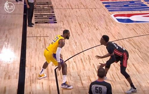 沃格尔使用浓眉为5号位、库兹马打4号位的小球阵扭转颓势,小球阵防守端无限换防,进攻端通过隆多+浓眉挡拆发起,利用热火逢挡拆双人延误隆多和低位双人夹击浓眉展开局部多打少,波普首节独得10分成为浓眉遭遇夹击的直接受益者。