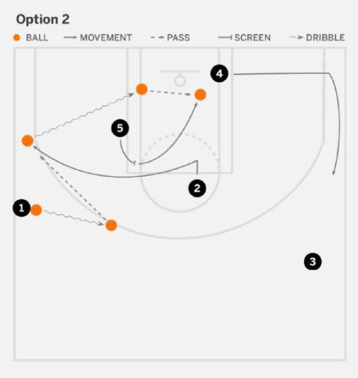 波波维奇喜欢这个战术,因为里面有一个点让对手意想不到:“当控球后卫启动后,你希望他的防守者会跟上他,然后想,‘或许我此刻需要换防。’换句话说,你就是希望对手犯错。”波波解释道。这会给球队制造一个空挡,大个子过去挡拆,用波波的话说,“像个傻大个一样在那站一会儿。”如果一切进展顺利的话,就会出现一个空位三分的机会。