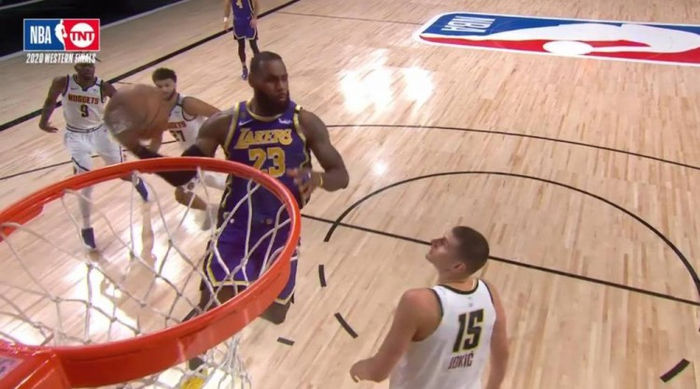 也许是今年季后赛真的没哨子,进行这一记上篮时的詹姆斯真的急了,他在上篮的同时看着裁判大喊“and 1!”示意穆雷拉手臂犯规了,值得一提的是,这么做还真有效,裁判果然吹罚了穆雷犯规,詹姆斯这一球无意间秀了一把滞空,球迷们这才意识到,他还是那个飞天遁地的“小皇帝”。有他在,湖人总冠军最终从口号变为了现实。