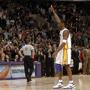 在赛前的颁奖仪式上,每个湖人球员都得到了自己的冠军戒指。最后一位在斯台普斯中心出场的球员是总决赛MVP,或者就像他的队友费舍尔介绍的那样:“世界上最好的篮球运动员,科比-布莱恩特。”