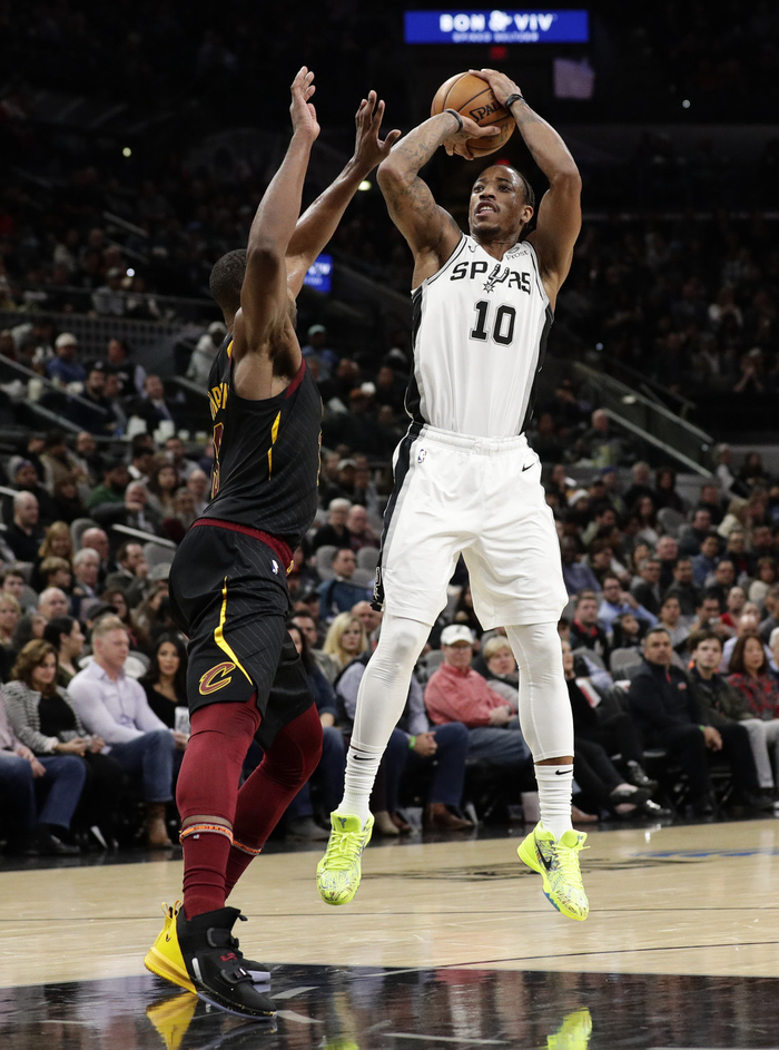德罗赞:伊戈达拉上脚的那双很酷,塔克的也很帅,还有米尔萨普,他也有几双很酷的。戴维斯上脚的也特别酷,尤其是在总决赛里穿。他穿的紫色的球员版,如果他没有上脚的话,我一定会让他给我寄几双。小托马斯也穿过几双超酷的科比球员版。