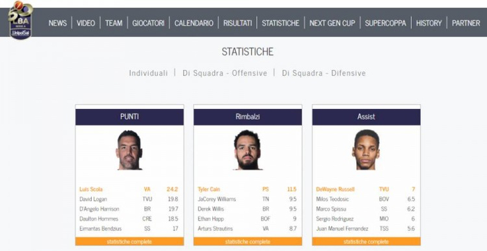 直播吧11月2日讯 目前效力于意甲瓦雷泽俱乐部的前NBA球员斯科拉,在当地时间11月1日进行的意甲第6轮比赛中,出战32分钟拿到全场最高的33分。虽然球队以82-104不敌萨萨里迪纳摩,但目前已经40岁“高龄”的斯科拉,能打出这样的数据也实属不易。目前意甲6轮战罢,斯科拉依旧以24.2分高居联赛得分榜首位。