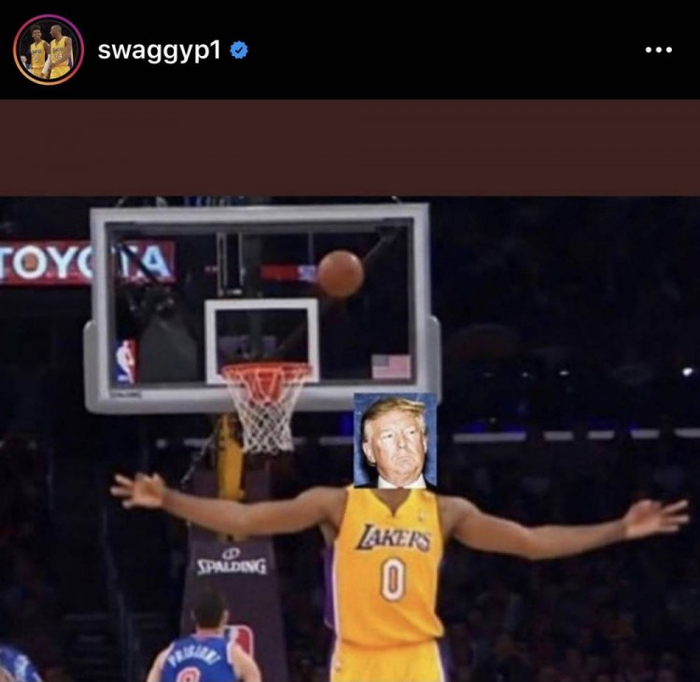 NBA失业青年尼克-杨随后在社交媒体上晒出了自己的经典表情包之一——提前庆祝自己打铁,但是他把图片中的自己换成了大选失利的特朗普……