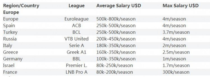 欧媒盘点各国联赛外援薪资水平:CBA世界第一 欧洲篮球联赛次席