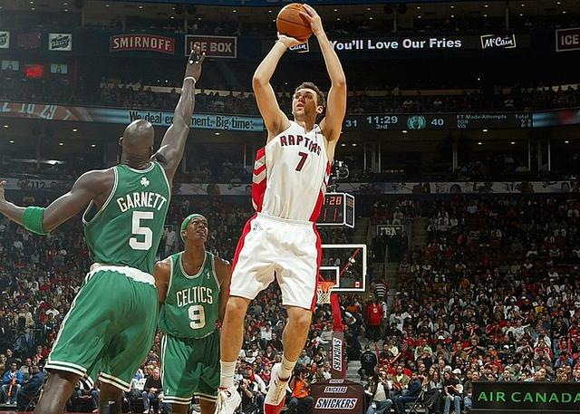 初代“意大利炮”巴尼亚尼也算不上是水货状元。他有中锋的身高,却是小前锋的打法,他面框突破能力不逊于波什,三分威胁比波什还要更大。波什离开猛龙后,巴尼亚尼以场均21.4分成为了那个赛季猛龙的队内得分王。但频繁的伤病让巴尼亚尼在NBA中只打了550场比赛。