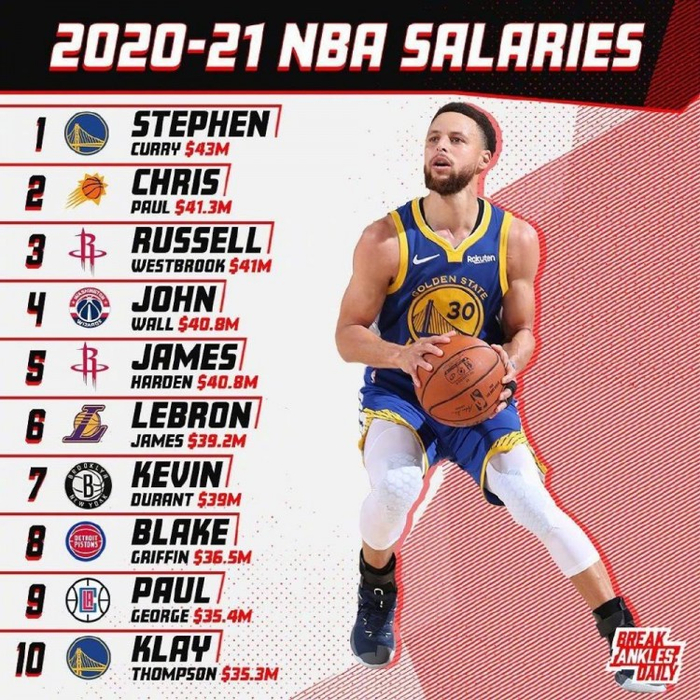NBA新赛季球员薪水排行榜TOP10:火勇各2人入榜