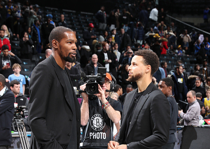 2月13日主场对阵篮网:杜兰特上次来到这里时这个球馆还在建设之中,但他从未在这里球迷的喝彩声中打球。杜兰特再次上演个人秀,但他的前队友库里更胜一筹,后者砍下44分,帮助勇士以117-113捍卫主场。