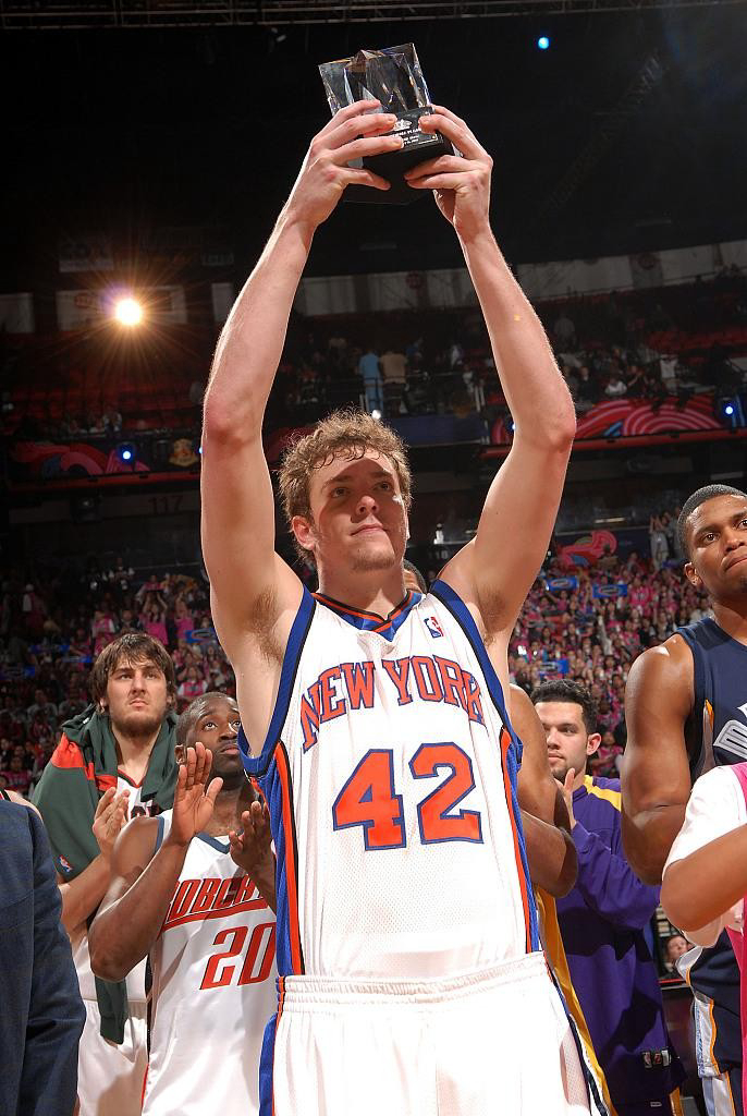 05-06赛季,动荡中的纽约尼克斯最终以23胜59负的战绩排名东部垫底,纵然是著名教头拉里-布朗也无法将球队带出泥潭,不过这也不能全怪布朗教练,尼克斯畸形的人员配置也给他增添了执教难度,赛季中期,布朗教练甚至排出过马布里、内特-罗宾逊、安东尼奥-戴维斯、埃迪-库里和大卫-李的奇怪首发,这样侧翼真空的断层阵容如果放到现在,不知会酿成怎样的人间惨剧,但这样的阵容也从侧面说明了:尼克斯的问题不仅仅出在教练身上。