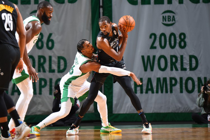 欧文37分6篮板8助攻、杜兰特29分4篮板3助攻2抢断、勒韦尔10分3篮板、阿伦9分11篮板4盖帽、哈里斯9分;杰伦-布朗27分8篮板3助攻、塔图姆20分8篮板2助攻、斯玛特13分3篮板6助攻2抢断、奥杰莱9分4篮板。