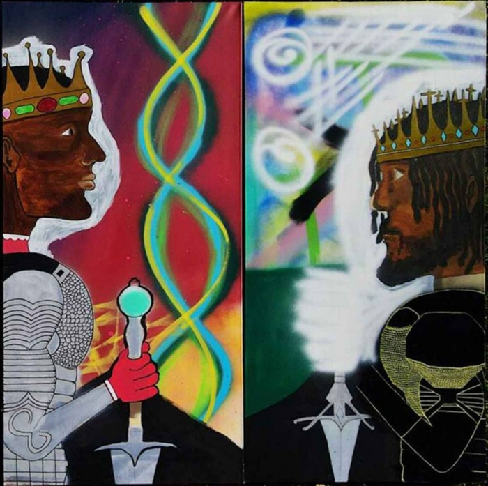 我真的非常沉迷于文艺复兴时期,已经有蛮长一段时间了。画作里穿着银色铠甲红色背景的是我兄弟,另一位穿着黑色铠甲的也是我的家人,他们最近都去世了,所以我想画两位国王纪念他们。产生这个念头之前,画布上已经有了内容,我还是直接在上面画了起来,所以背景就成了这样。当然这并不重要,不影响我喜欢这幅作品。