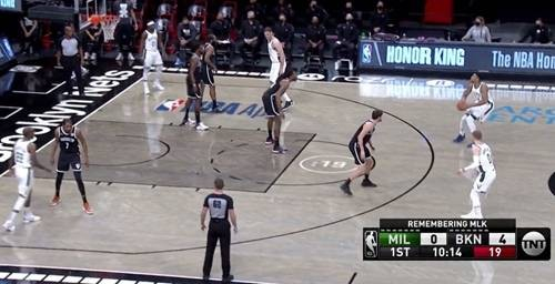 篮网以哈登+乔-哈里斯挡拆发起,利用雄鹿无限换防,哈登避开霍乐迪,先后找康诺顿/迪文岑佐单挑冲击篮筐主宰进攻端;终场前38.0秒,哈登拼下关键前场篮板,阿杜空位三分见血封喉。米德尔顿连续两回合单打三分未遂,篮网得以在这场对攻大战中逃出生天。