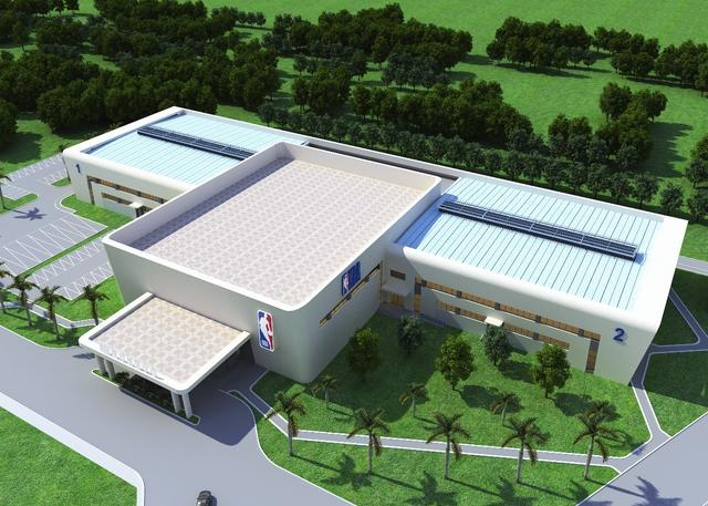 篮球中心占地面积10,352.5平方米,包含2片比赛场(共3000座位)和3片训练场,共有 30个篮筐和5个投篮机。同时包括健身房、康复中心、培训室、零售店以及室内游泳池、医疗室、球员公寓、球员餐厅(共享设施)。