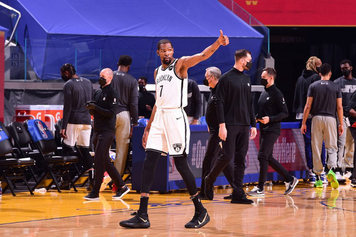 在以上进攻火力不对等的事实下,杜兰特上半场尚且13中4,篮网三巨头三分线外10中3,火力完全没有打开,篮网已经半场领先15分。