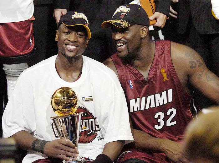 2004-05赛季,二年级秀韦德迎来了他生涯前半段最大牌的球星队友,那就是大鲨鱼奥尼尔,源于湖人王朝解体,奥尼尔离开湖人,东游迈阿密,在见到韦德时,奥尼尔似乎见到了另一个科比——不仅有天赋,还有着无穷的斗志。