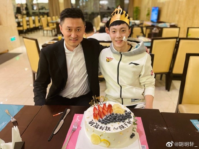 广东队主教练杜锋也更新个人社交媒体,祝胡明轩生日快乐。