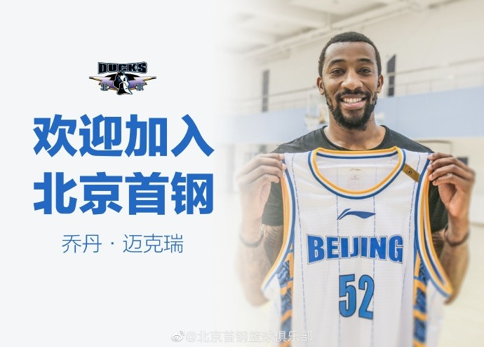 欢迎迈克瑞加盟北京首钢男篮大家庭!