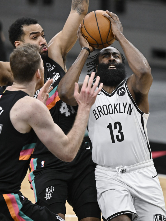 本赛季的篮网在哈登在场的情况下每百回合领先对手6分,这很棒但是并没有特别出色。数据统计表明,哈登在欧文和杜兰特都不在场的情况带队打了308分钟,三人独自带队的时间相差无几。替补球员在哈登的带领下打得更好,于是纳什教练给了哈登更多单独带队的机会,板凳席球员成长得很快。哈登的能力很全面,他本赛季的三双次数已经能在篮网队史排到第二名了。赛季中期被交易的球员拿到MVP的先例迟早会出现,我觉得哈登有资格成为这个先例,只是目前来看并不容易。如果杜兰特继续缺阵之后的比赛,甚至欧文也缺阵一些,而哈登将整支队伍扛在肩上前进,那么情况就会大不相同。
