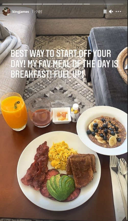 詹姆斯更新Ins:一日三餐中我最喜欢的一餐就是早餐!冲鸭