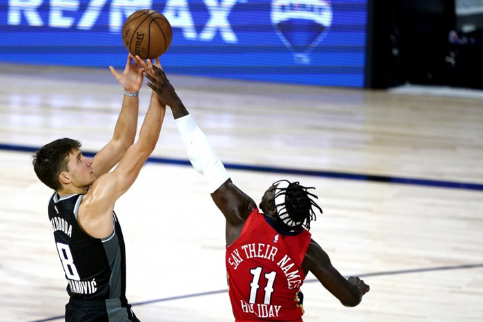 霍勒迪的防守封神之战正是NBA季后赛的名场面。2018年的季后赛,由利拉德、麦科勒姆率领的西部第三的开拓者被西部第六鹈鹕的以下克上,横扫出局。整轮系列赛下来,霍勒迪不仅自己的进攻表现亮眼,防守端更加出色,将利拉德和麦科勒姆两人场均总得分限制在40分以下。当赛季MVP排名第四,力压库里入选一阵的利拉德更是被霍勒迪锁死,场均命中率只有35.2%,得分降至18.5分!