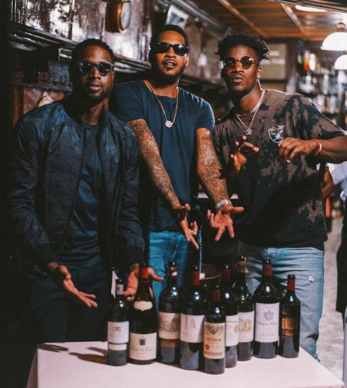 直播吧4月12日讯 今天,开拓者球员安东尼在推特上晒出一组照片,图中他和韦德&巴特勒一起品味红酒。