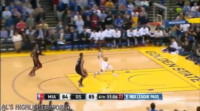 热火队暂停后勒布朗三分不中又出现失误,勇士队又连追4分以74-77落后。安德森扣篮得手为球队止血,巴恩斯再中三分,两队只剩下2分差距。阿伦终于命中三分回应,库里爆发连投带罚拿下5分,三节结束时勇士以82-84落后2分。