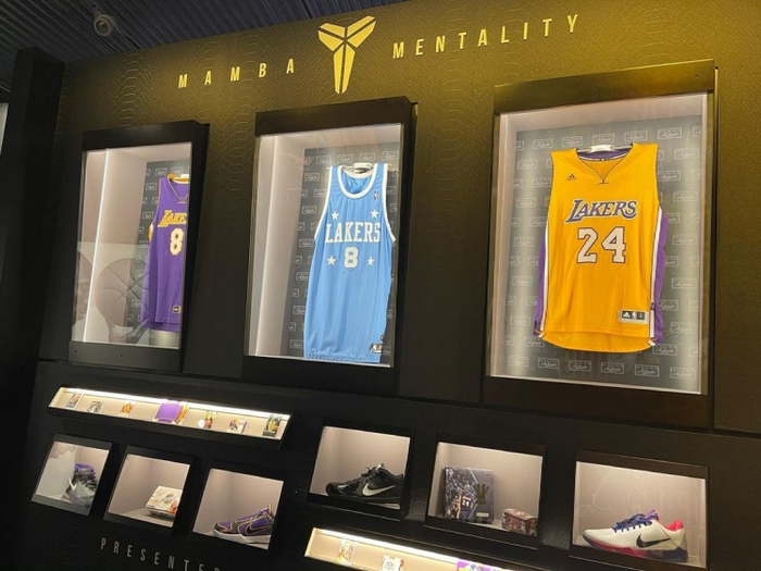 此次展览由球星卡品牌帕尼尼赞助,展品包括劳尔梅里恩高中(科比母校)球场的部分场地、科比为湖人赢得5枚总冠军戒指的复制品、科比获得生涯最高分81分时所穿的球鞋、2017年获得奥斯卡动画短片的《亲爱的篮球》(瓦妮莎的提议)。
