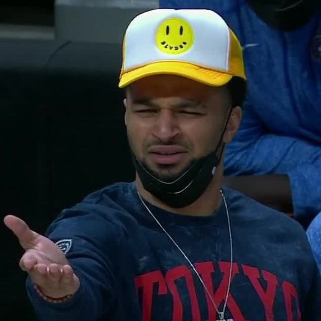 😆😆😆 头戴黄白色帽子!穆雷场边观战 表情抢眼 NBA综合 2021.05.2312:10 关注 直播吧5月23日讯NBA季后赛首轮G1,开拓者主场迎战掘金。此役,贾马尔-穆雷在场边观战,头戴黄白色帽子,表情抢眼。【来源:直播吧】