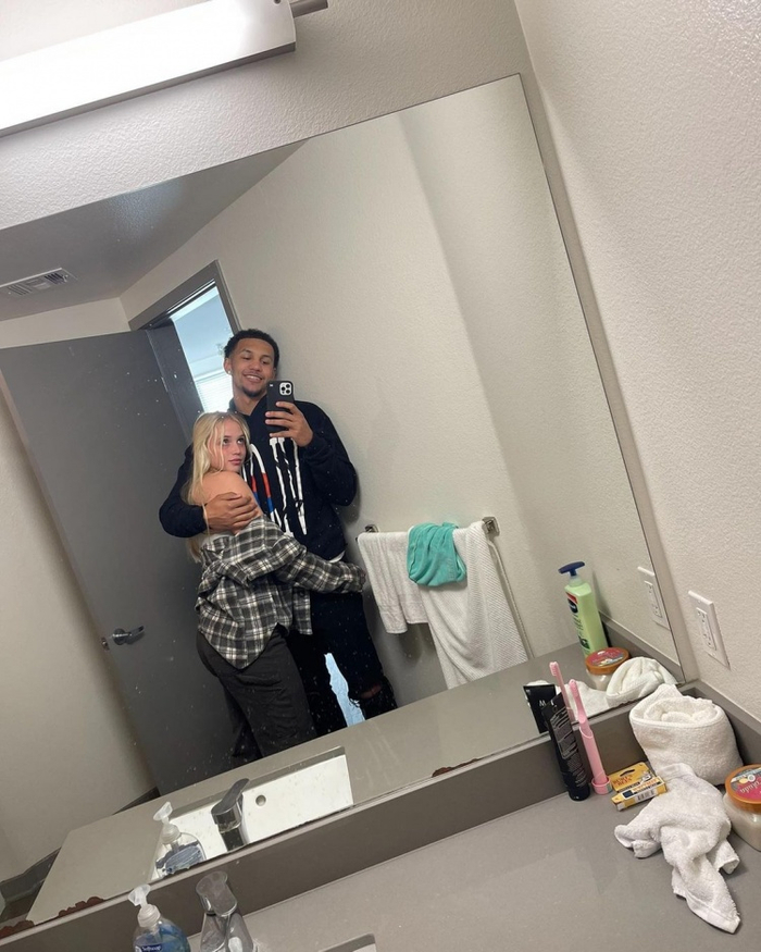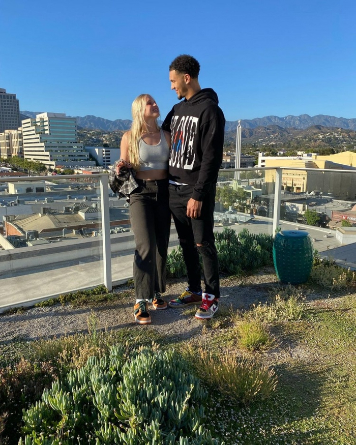 直播吧7月3日讯 今年热门新秀杰伦-萨格斯近日晒照官方宣布与“美国晴子”海莉-范丽丝交往。