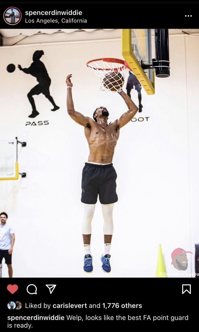 丁威迪在ins上写道:“呃,看起来自由市场上最好的控卫已经准备好了。”并且配上了自己训练时的照片。