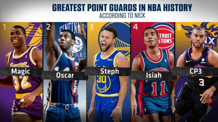 名嘴排历史前5控卫:魔术师、大O、库里、微笑刺客、保罗