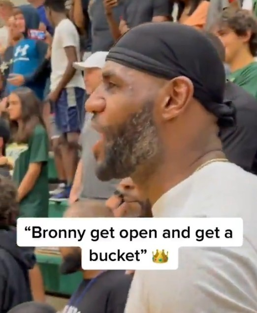 直播吧7月3日讯 詹姆斯今日现场观战了大儿子布朗尼的比赛,并在比赛最后时刻(布朗尼所在的球队落后2分)指导道:“布朗尼,找到空位打进一球!”