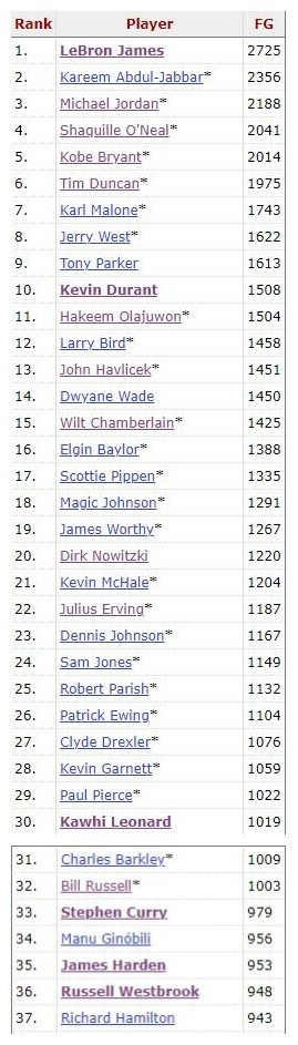 保罗季后赛运动战进球数超阿伦&斯科特 升至历史第39位