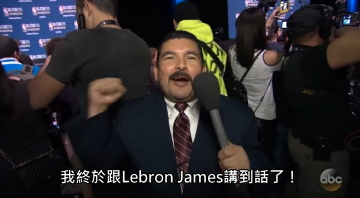 历史性的瞬间!脱口秀记者吉尔莫终于跟詹姆斯完成了合影