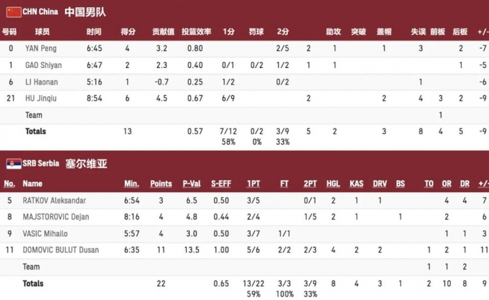 塞尔维亚的特点是年龄大,经验丰富,尤其是11号杜桑,35岁身经百战,个人积分世界第五。杜桑对中国男队独取11分,突传投俱佳,在崴了脚的情况下,还在最后46.1秒面对胡金秋投中2分,提前结束比赛。