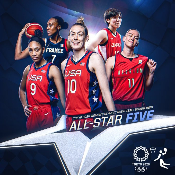 今晚,东京奥运会女篮最佳阵容也随之出炉:布里安娜-斯图尔特(美国)、阿佳-威尔逊(美国)、町田瑠唯(日本)、艾玛-梅思曼(比利时)和桑德琳-格鲁达(法国)。