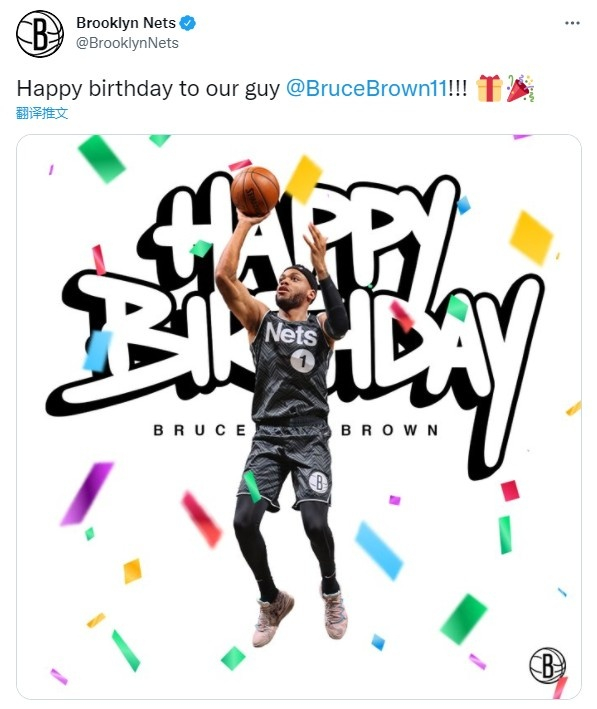 真挚的祝福!篮网官方祝布鲁斯-布朗25岁生日快乐