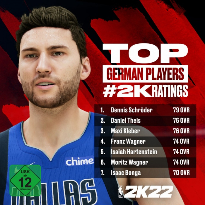 《NBA2K22》德国球员能力值公布:施罗德79&泰斯76领衔
