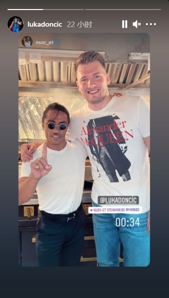 东契奇近日更新INS动态,他转发了网红“撒盐哥”的动态,动态中东契奇与撒盐哥进行了一个合影。