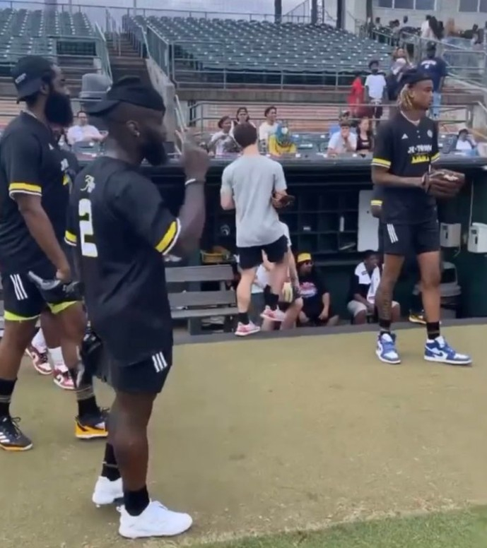 直播吧8月30日讯 今日,篮网球员哈登与队友克拉克斯顿身现垒球比赛现场,哈登接受了记者采访。