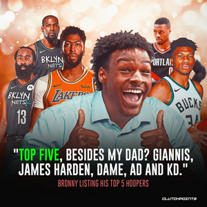 直播吧9月13日讯 詹姆斯大儿子布朗尼此前谈到了自己心目中,除去父亲詹姆斯以外的前五球员。